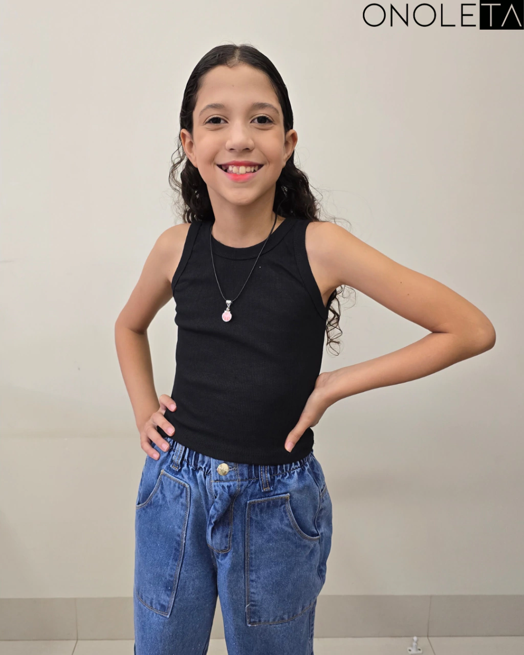 Está regata infantil é uma peça versátil, ideal para diversas ocasiões, desde um passeio casual até um encontro especial. Não perca a oportunidade de brilhar e se sentir maravilhosa! Transforme seu guarda-roupa e deixe sua marca com este item indispensável!