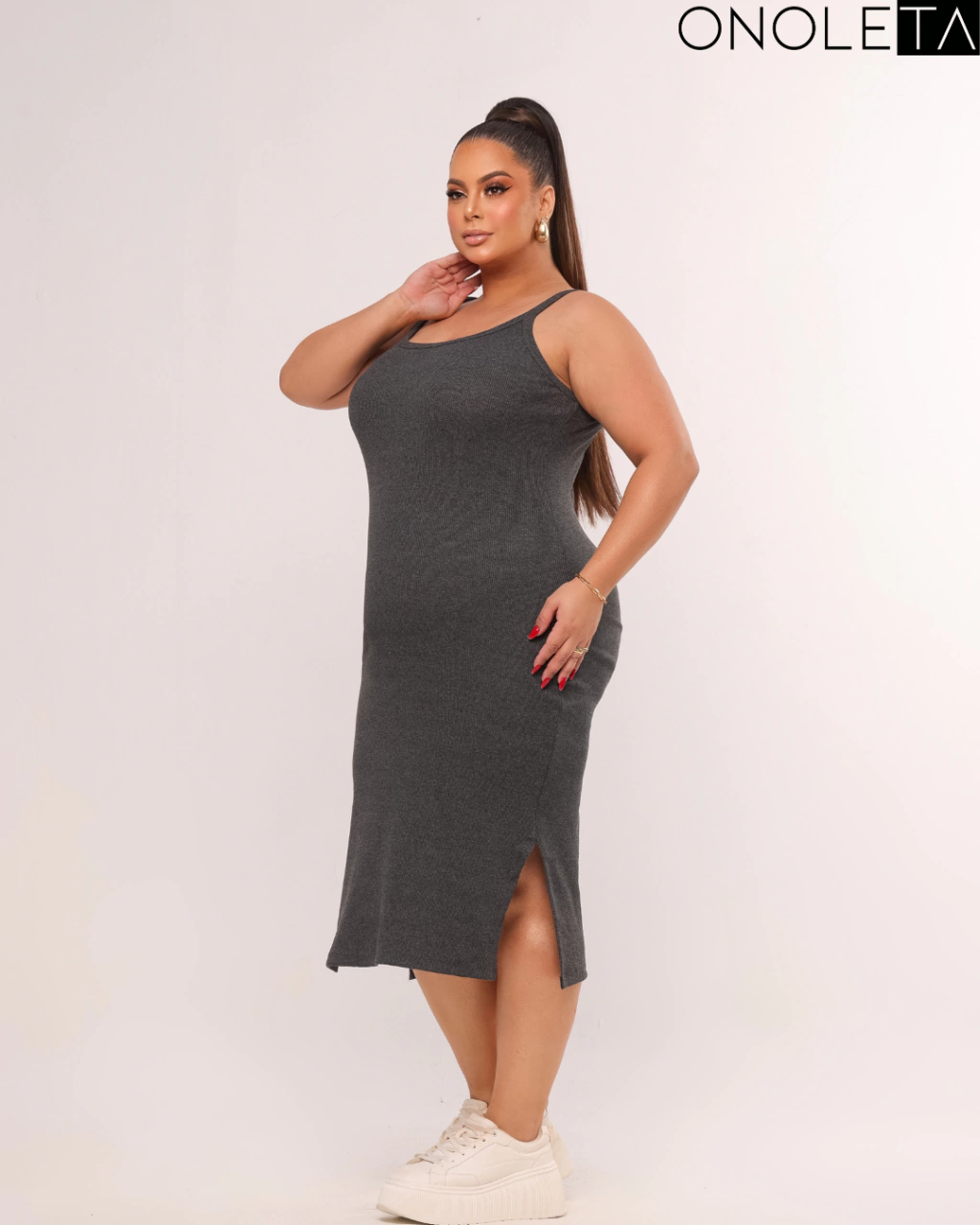 Confeccionada em ribana canelada, VESTIDO MIDI ALCINHA PLUS é a escolha ideal para quem deseja unir conforto e estilo. Com tamanhos G1 e G2, se adapta perfeitamente ao seu corpo, realçando suas curvas de maneira irresistível.